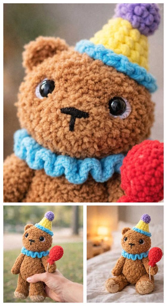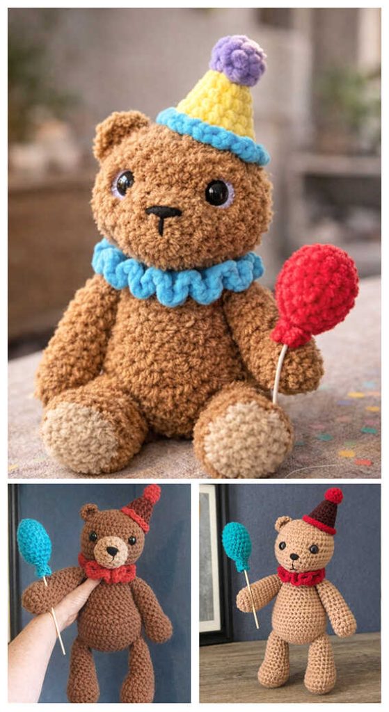 A cheerful party-themed amigurumi project to add a fun handmade touch to your crochet time. This free amigurumi teddy bear pattern is designed by crochetbyimogen13 and features an adorable bear with a party hat and a tiny balloon. With its playful look, it’s a perfect choice for DIY Crochet Gift Ideas, birthday decor, or cute handmade toys for kids. Designs like this fit beautifully into Amigurumi Gift Projects, and we sincerely thank crochetbyimogen13 for sharing this delightful teddy bear design. You will also find related amigurumi ideas at the very end of the pattern.