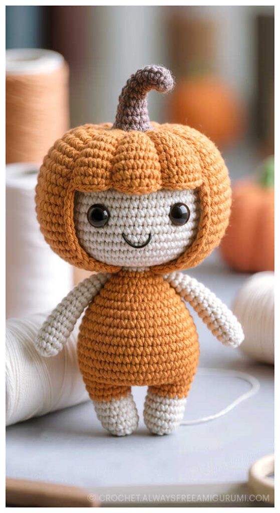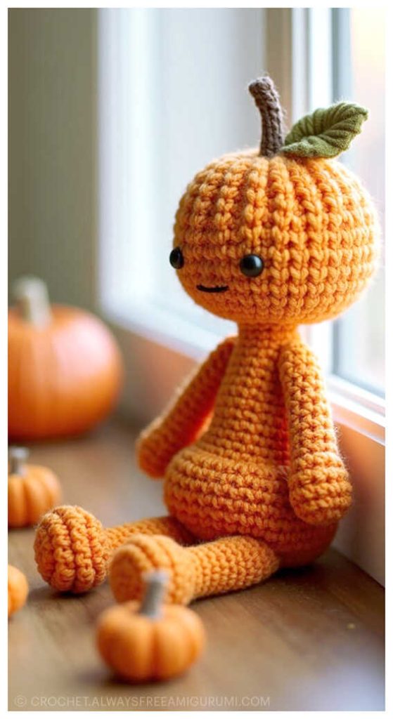 As you follow this free crochet tutorial, you’ll only need a few simple materials like fiberfill, a tapestry needle, scissors, and a stitch marker to complete your doll. A heartfelt thanks to Tobby’s Hand Craft for sharing such a sweet and creative design! Make sure to check the end of this pattern for inspiring amigurumi Pumpkin Doll ideas that will spark your imagination and add even more handmade magic to your crochet collection. 🎃