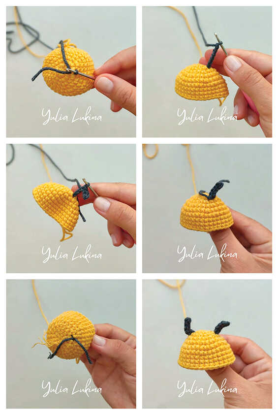 At this stage, crochet the antennae.