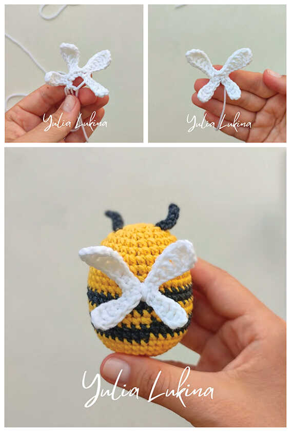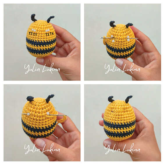 Sew the wings to the back of the bee.